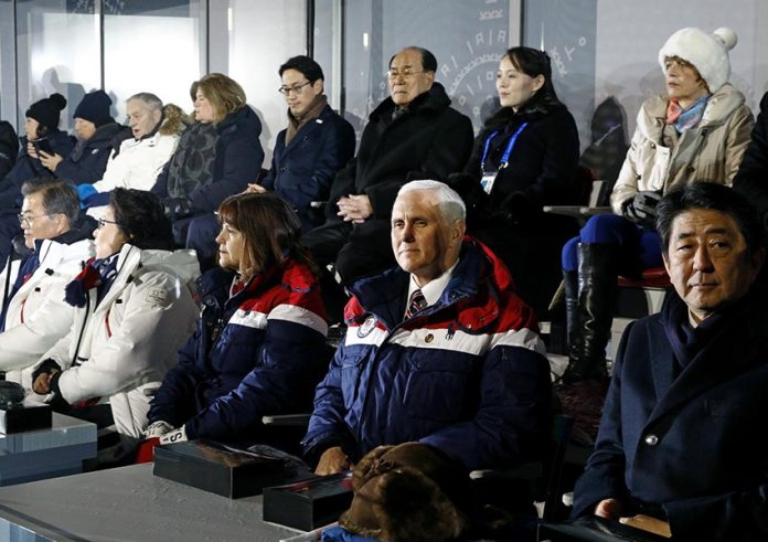 Pence berada di Korea Selatan untuk menghadiri upacara pembukaan Olimpiade Musim Dingin. Dia duduk di depan Kim Yo Jong, adik Kim Jong Un, dengan jarak hanya beberapa meter.