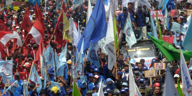 Salah satu tuntutan mereka adalah menolak Peraturan Presiden (Perpres) Nomor 20 Tahun 2018 tentang Penggunaan Tenaga Kerja Asing (TKA). “Satu kata untuk Perpres 20 adalah…,” tanya salah satu orator, Nur Waluyo.