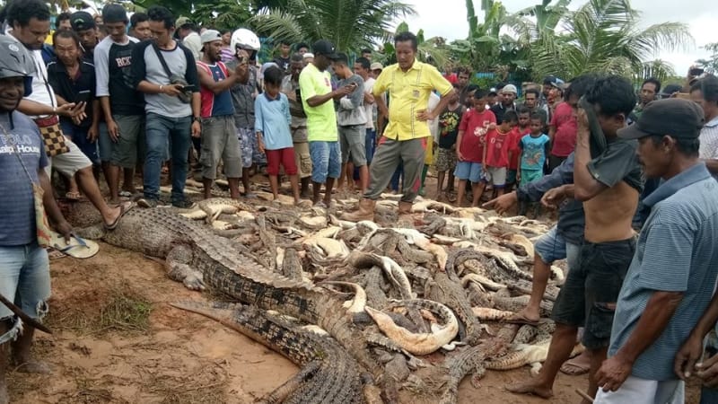 Diberitakan sebelumnya, sebanyak 292 buaya di penangkaran tersebut ramai-ramai dibantai oleh sekelompok warga pada Sabtu, 14 Juli 2018. Pembantaian itu dipicu oleh seorang warga bernama Sugito yang tewas sehari sebelumnya karena diterkam oleh buaya yang diduga berasal dari penangkaran tersebut.
