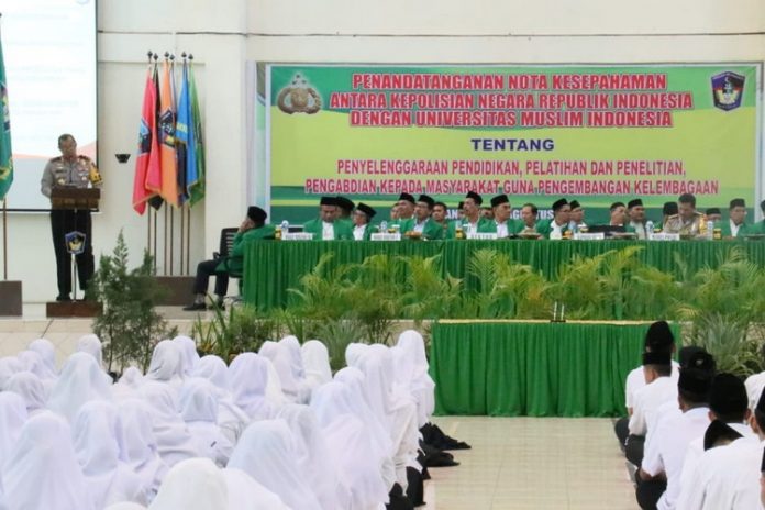 Kapolda Sulsel dalam kegiatan kali in turut didampingi Karo Sarpras Polda Sulsel, Wadir Binmas beserta Pamen Biro SDM Polda Sulsel, Turut hadir Rektor Univeristas Muslim Indonesia (UMI) Prof Dr.H Basri Modding SE, MS.I, Kapolres Pangkep beserta Dekan. (Kontri)