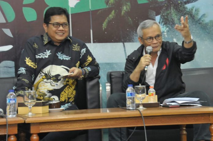 Turut sebagai narasumber dalam diskusi Anggota MPR dari Fraksi PDIP Aria Bima dan Direktur Para Syndicate, Ari Nurcahyo.