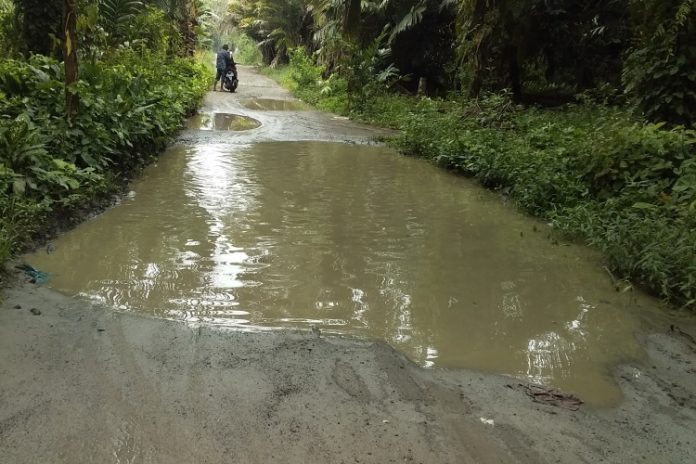 “Kalau hujan turun, jalan penuh air dan becek. Akibatnya warga susah melintasi jalan tersebut,” keluh mereka.
