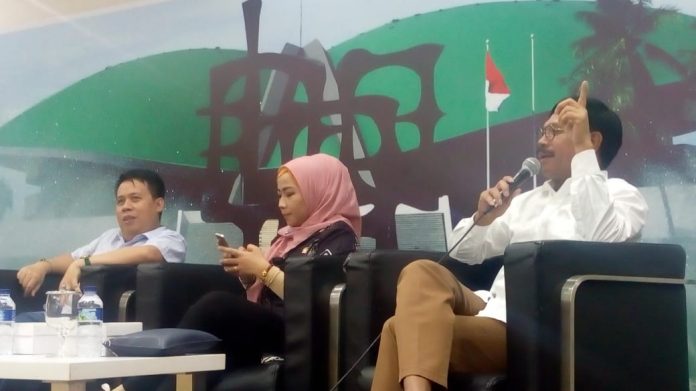Siska Merlin, Jhonny G Plate dan Uchok Sky Khadafi dalam sebuah diskusi di media center kompleks parlemen