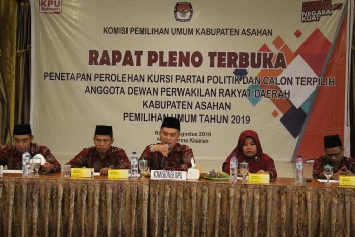 Asahan, PONTAS.ID – Komisi Pemilihan Umum (KPU) Kabupaten Asahan mengumumkan perolehan kursi masing-masing partai yang lolos di DPRD Asahan dalam rapat pleno terbuka yang digelar di Hotel Marina, Kisaran, Asahan, Sumatera Utara, Rabu, (14/8/2019).