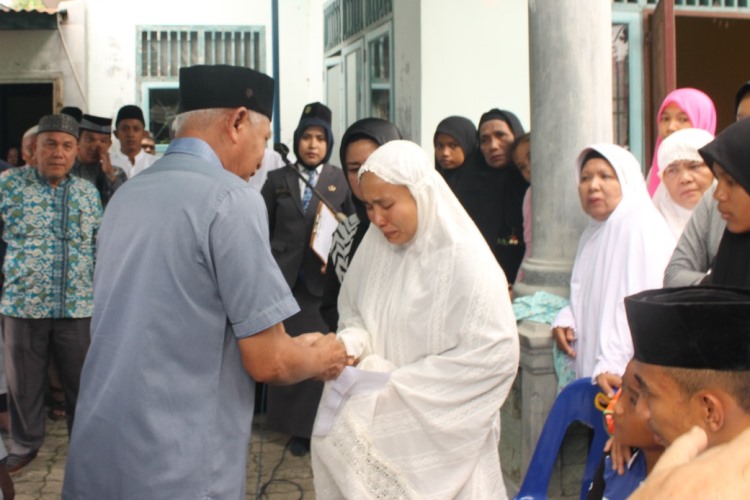 Didampingi Wakil Ketua II DPK Korpri Asahan Hasbi Simbolon, Surya menyerahkan bantuan pemakaman kepada keluarga almarhum.