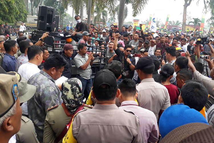 Asahan, PONTAS.ID – Hampir seribuan kelompok massa yang terdiri dari beberapa kelompok nelayan tradisional yang ada di Kabupaten Asahan menggeruduk Kantor DPRD Kabupaten Asahan, Sumatera Utara, Rabu (18/9/2019).