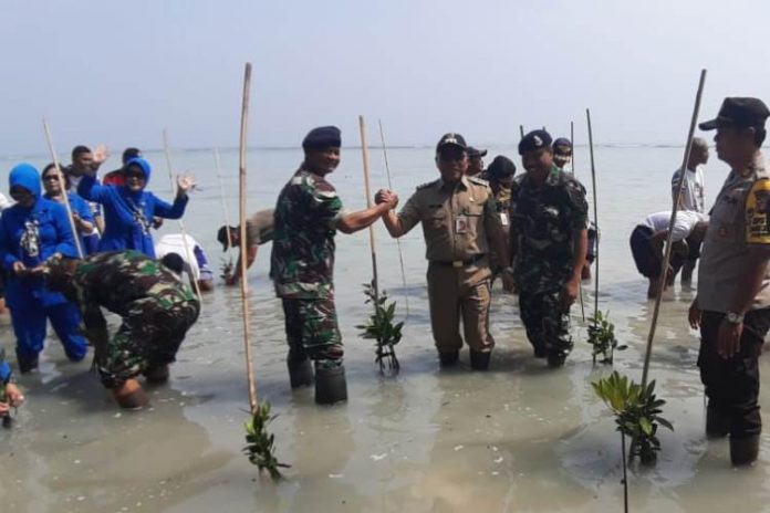 Jakarta, PONTAS.ID – Pemerintah Kabupaten Administrasi Kepulauan Seribu berkolaborasi bersama Pusat Hidrografi dan Oseanografi (Pushidrosal) TNI Angkatan Laut serta pelajar melakukan penanaman 4.000 pohon bibit mangrove di Pulau Tidung Kecil, Kepulauan Seribu, Senin (7/10/2019).