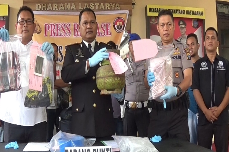 Dari tangan tersangka, polisi berhasil mengamankan barang bukti berupa 1 unit sepeda motor Honda Vario warna merah dengan nopol BK 5814 NAP, 1 unit Hand Phone Xiaomi Redmi 5A warna Rose Gold, 1 buah tabung gas elpiji 3 Kg yang diduga dipakai tersangka memukul kepala korban.