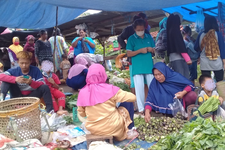 Seperti pengamatan PONTAS.id di Pasar MInggu, Kelurahan Marga Tunggal, Kecamatan Jayaloka pada Minggu (3/5/2020) masih banyak pedagang dan pembeli selain tidak menggunakan masker juga tidak menerapkan jaga jarak fisik (physical distancing).