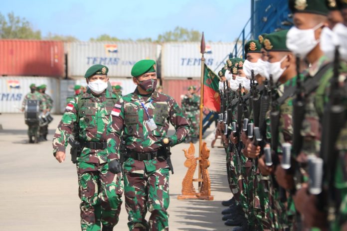 Merauke, PONTAS.ID – Komandan Korem (Danrem) 174/ATW, Brigjen TNI Bangun Nawoko memimpin upacara pelepasan purna tugas Satgas Pamtas Yonif MR 411/Pdw Kostrad dan Satgas Pamtas Yonif 406/CK, yang telah selesai melaksanakan tugas pengamanan perbatasan RI-PNG Sektor Selatan Kabupaten Merauke, di Dermaga Pelabuhan Merauke, Papua, Senin (22/6/2020).