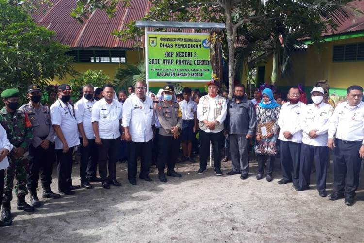 Sergai, PONTAS.ID – Bupati Serdang Bedagai (Sergai) meresmikan Sekolah Menengah Pertama (SMP) Negeri 2 Satu Atap Pantaicermin. Sekolah ini berada satu lokasi dengan SD Negeri 105377 di Dusun II Nagakisar.