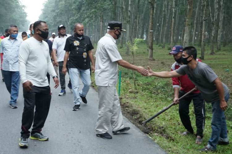 Asahan, PONTAS.ID – Bupati Asahan, Surya hadir dan ikut berbaur dengan masyarakat yang menggelar kegiatan gotong-royong di Desa Bunut Seberangan, Kecamatan Pulo Bandring, Asahan, Sumatera Utara.