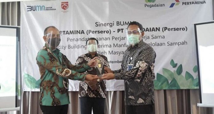 Jakarta, PONTAS.ID – PT Pertamina (Persero) dan PT Pegadaian (Persero) berkolaborasi dalam program TJSL pengelolaan sampah, yaitu Bank Sampah Pertamina yang mengubah minyak jelantah menjadi biodiesel dikombinasikan dengan Bank Sampah Pegadaian yang mengusung program Memilah Sampah Menabung Emas.