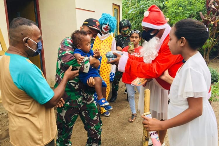 Dansatgas Yonif 125/Simbisa, Letkol Inf Anjuanda Pardosi, mengungkapkan, guna memeriahkan suasana Natal di wilayah perbatasan, lima orang personel Satgas dari Pos Kuler dipimpin Sertu Jansen Nanda Siregar bergabung dengan tim Sinterklas membagikan kado Natal kepada anak-anak di Distrik Naukenjerai, Kabupaten Merauke.