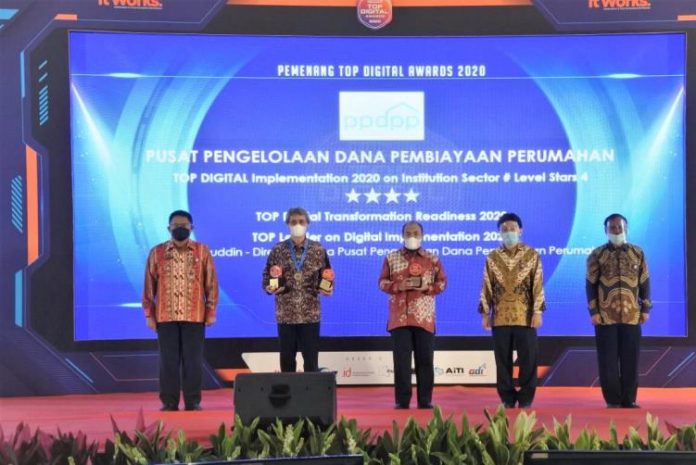 Berkat inovasi yang dilakukan PPDPP Kementerian PUPR meraih tiga penghargaan dalam ajang Top Digital Awards 2020, Selasa (22/12/2020). Tiga penghargaan tersebut yakni TOP DIGITAL Implementation 2020 on Institution Level Stars 4; TOP DIGITAL Transformation Readiness 2020; serta TOP Leader on Digital Implementation 2020 untuk Arief Sabaruddin selaku Direktur Utama PPDPP.