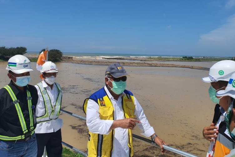Jakarta, PONTAS.ID – Menteri Pekerjaan Umum dan Perumahan Rakyat (PUPR) Basuki Hadimuljono meninjau pembangunan infrastruktur pengendali banjir untuk melindungi Bandara Yogyakarta Internasional Airport (YIA) di Kabupaten Kulon Progo, Daerah Istimewa Yogyakarta (DIY), Kamis (4/2/2021). Menteri Basuki menargetkan pembangunannya dapat selesai dalam dua (2) tahun.