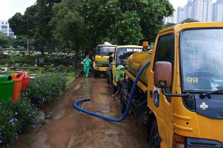 Menurut Mila, hujan lebat yang terjadi pada Sabtu malam hingga Minggu kemarin membuat kawasan TPU Karet Bivak tergenang air hingga mencapai 30cm dan pada hari itu juga dilakukan penyedotan menggunakan pompa.