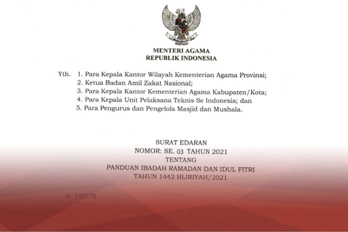 Jakarta, PONTAS.ID – Menjelang bulan Ramadan yang masih berlangsung dalam suasana pandemi Covid-19 ini, Menteri Agama (Menag) menerbitkan Surat Edaran (SE) Nomor 03 Tahun 2021 tentang Panduan Ibadah Ramadan dan Idulfitri Tahun 1442 Hijriah/2021 Masehi.