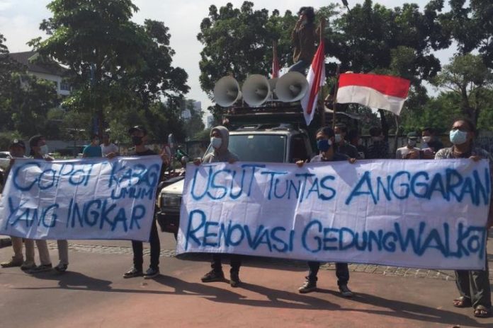 “Kami mendesak agar anggaran renovasi Gedung Kantor Walikota diusut tuntas,”tegas koordinator lapangan aksi demo, Misar Tagep, saat ditemui PONTAS.id, saat berunjuk rasa, Senin (12/4/2021).