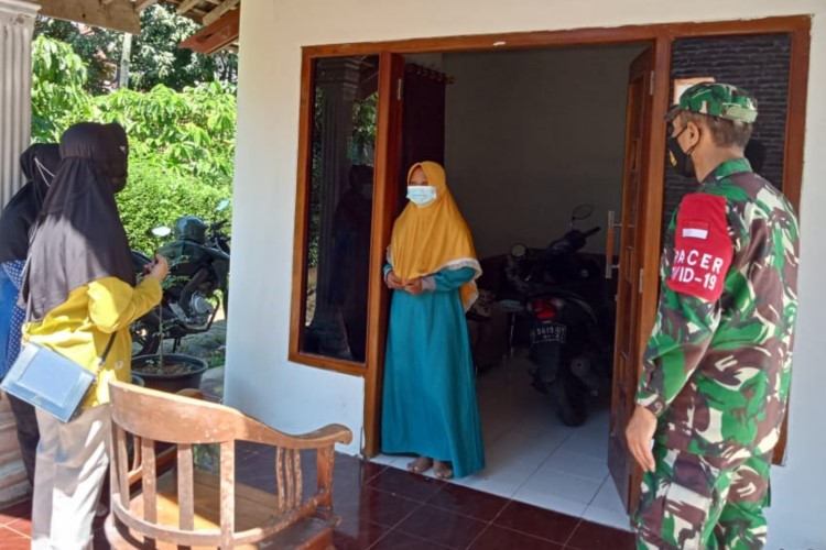 Kendal, PONTAS.ID – Anggota Bintara Pembina Desa (Babinsa) Koramil 08/Patean, Peltu Shohibun Nizar dari jajaran Kodim 0715/Kendal melakukan pendampingan terhadap petugas tracing contact Covid-19.