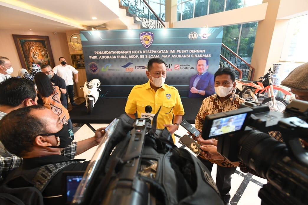Jakarta, PONTAS.ID – Ketua Umum Ikatan Motor Indonesia (IMI) Bambang Soesatyo bersama Ketua Umum Perhimpunan Hotel dan Restoran Indonesia (PHRI) Hariyadi Sukamdani menandatangani MoU antara IMI dengan PHRI. Melalui MoU tersebut, PHRI memberikan berbagai fasilitas kepada para pemilik kartu anggota IMI.