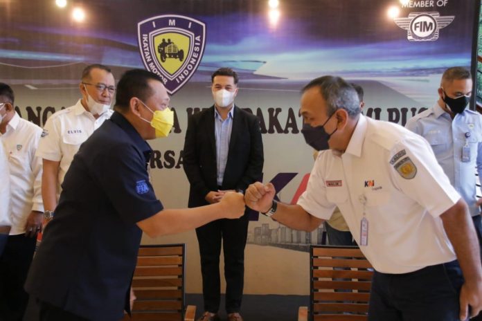 Jakarta, PONTAS.ID – Ketua Umum Ikatan Motor Indonesia (IMI) Bambang Soesatyo bersama Plt Direktur Utama PT Kereta Api Logistik (KALOG) TLN Ahmad Malik Syah menandatangani Perjanjian Kerjasama antara IMI dengan KALOG tentang pengiriman barang dengan kereta api.