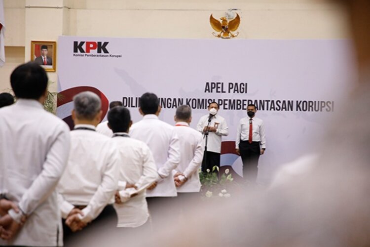 Pesan ini disampaikan oleh Ketua KPK pada kegiatan Apel Pagi hari, di Gedung Merah Putih KPK, Kuningan, Jakarta Selatan, yang diikuti oleh seluruh jajaran struktural dan pegawai dengan mematuhi protokol kesehatan yang berlaku, Senin (3/1/2022).