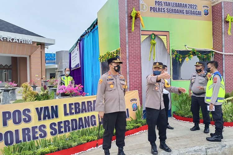Sergai, PONTAS.ID- Kapolres Serdang Bedagai (Sergai), AKBP Ali Machfud melaksanakan cek Pos Pam (Pengamanan) Ops Ketupat Toba 2022 di wilayah hukum (Wilkum) Polres Sergai, Kamis (28/4/2022).