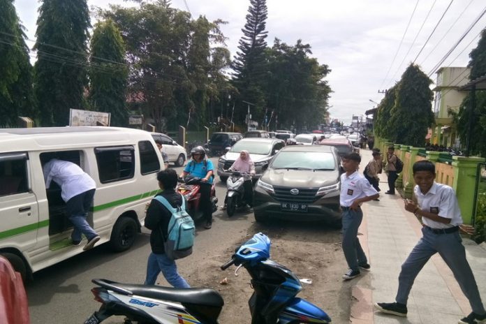 Padang Sidempuan, PONTAS.ID – Macet Parah terjadi di Komplek Sekolahan Jl.Sutan Soripada Mulia Sadabuan, Kota Padang Sidempuan, Sabtu (25/6/2022).