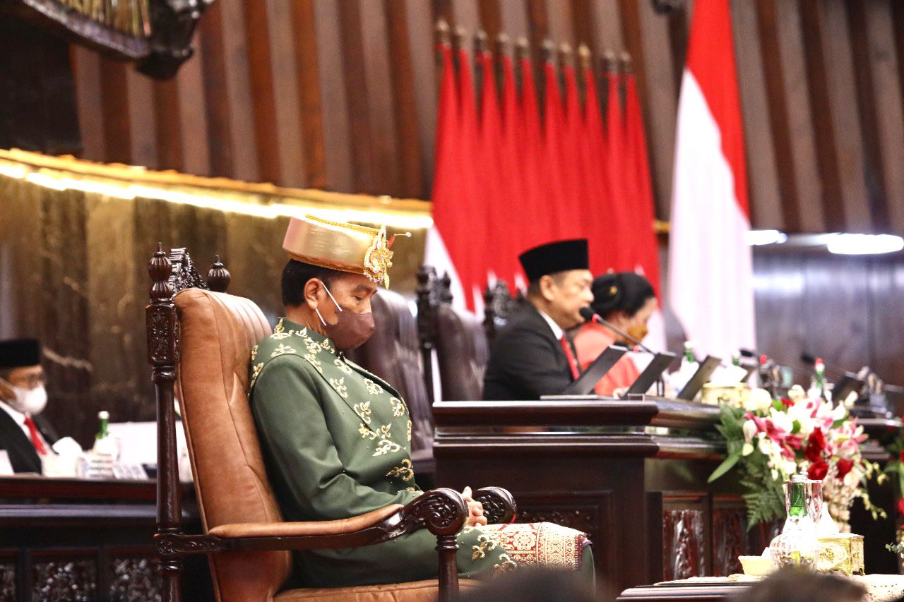 Jakarta, PONTAS.ID – Presiden RI Joko Widodo (Jokowi) menyampaikan pidato pada Sidang Tahunan MPR RI dan Sidang Bersama DPR RI dan DPD RI dalam rangka HUT Ke-77 Proklamasi Kemerdekaan RI, di Gedung Parlemen, Jakarta, Selasa (16/08/2022).