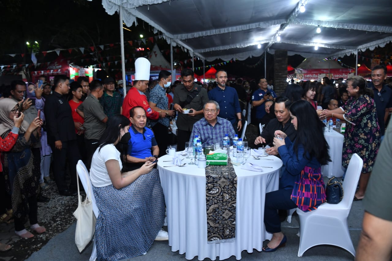 Dalam kesempatan tersebut, di panggung terbuka, SBY sempat menyumbangkan suara dengan menyanyikan lagu “Have You Ever Seen the Rain” dari Rod Steward dan disambut hangat oleh para pengujung festival. Ketum Partai Demokrat, AHY, bersama istri Anisa Pohan juga turut naik panggung memeriahkan malam penyelenggaraan festival tersebut.