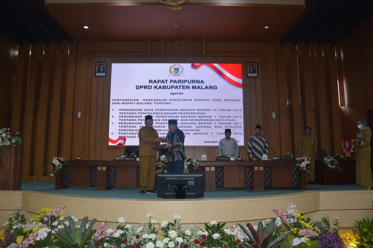 Malang, PONTAS.ID – Sambutan Bupati Malang, HM Sanusi pada rapat Paripurna DPRD, Selasa siang (14/3/2023) dengan agenda penyampaian 4 Rancangan Peraturan Daerah (Raperda) tentang Perubahan atas Peraturan Daerah (Perda) nomor 10 tahun 2019 tentang Penyelenggaraan Perparkiran, Perubahan atas Perda nomor 3 tahun 2019 tentang Pemberian Insentif dan Kemudahan Investasi, Perubahan atas Perda nomor 5 tahun 2015 tentang Penyerahan Prasarana, Sarana dan Utilitas Perumahan dan Kawasan Permukiman, Pencabutan Perda nomor 1 tahun 2018 tentang Bangunan Gedung berjalan dengan lancar dan penuh khidmat.