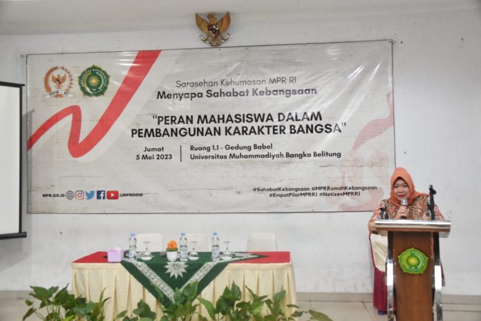 Hal tersebut disampaikan Siti Fauziah di hadapan 125 mahasiswa dari berbagai fakultas dan civitas akademika Universitas Muhammadiyah, Bangka Belitung (Babel), pada saat membuka acara Sarasehan Kehumasan MPR RI, Menyapa Sahabat Kebangsaan.